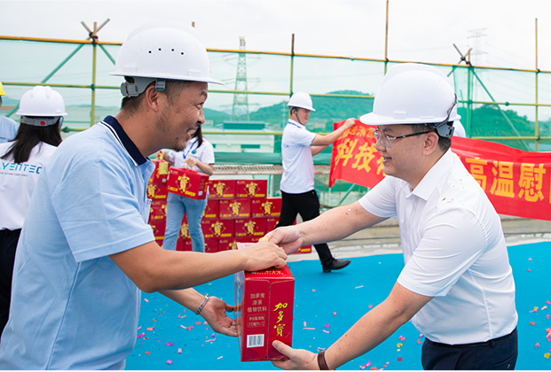 After that, the leaders sent cool drinks to the construction staff of the industrial park, expressed their appreciation to those who worked hard for the project in the hot summer, and urged everyone to pay attention to their own health and safety.