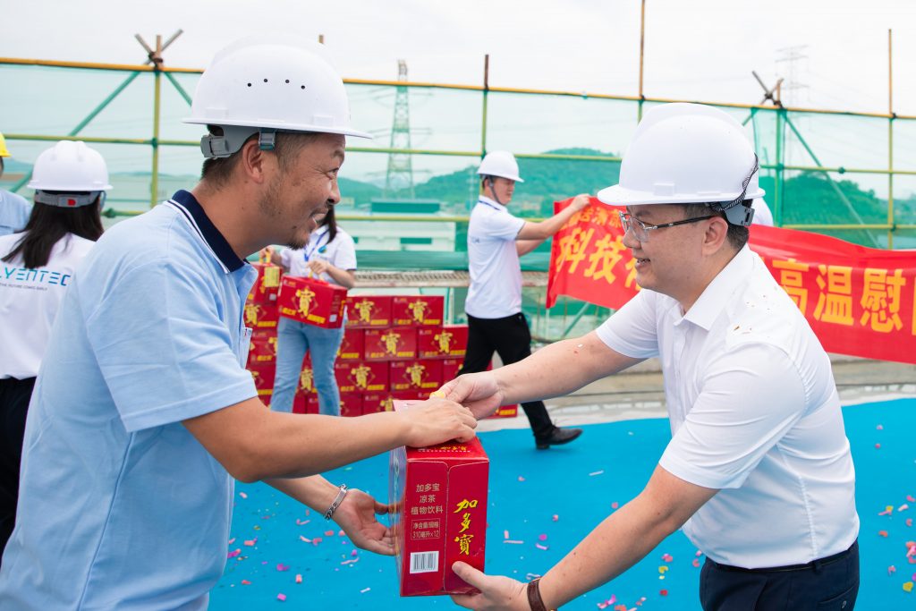 In order to keep protecting workers in high temperature operation, ensure the health and safety of the construction personnel fighting in the front line of the project, and make sure that the construction progressing smoothly, Guangdong Polyentech Co., Ltd. sent cool drinks to the construction personnel of the industrial park and expressed deepest condolences to them on August 19. The leaders of the company appreciated the spirit of the front-line construction personnel who were not afraid of high temperature and strictly adhered to their posts, and told everyone to pay attention to their own protection.